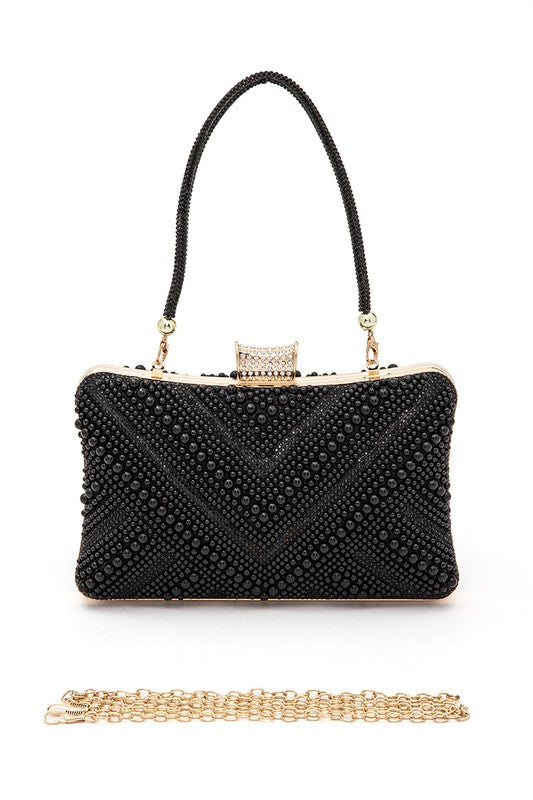 Chevron Pearl Rhinestone Convertible Box Clutchj
