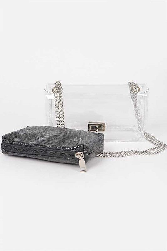 2 In 1 Metallic Pouch Clear Shoulder Bag