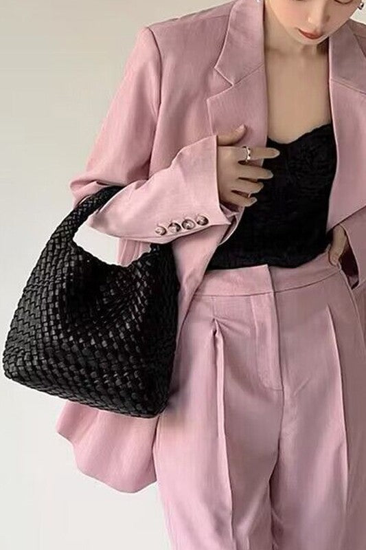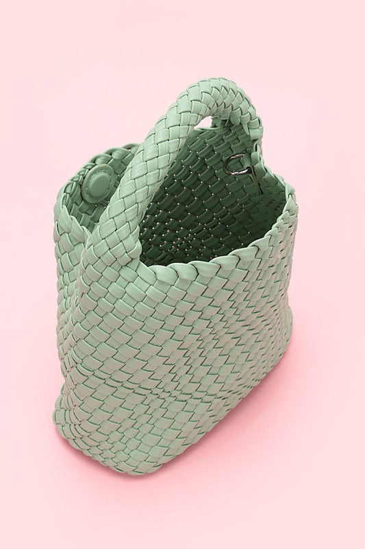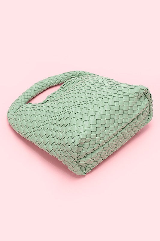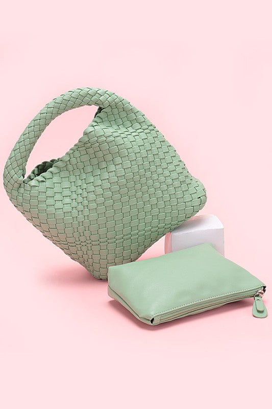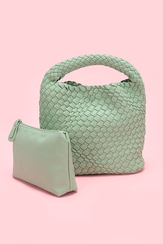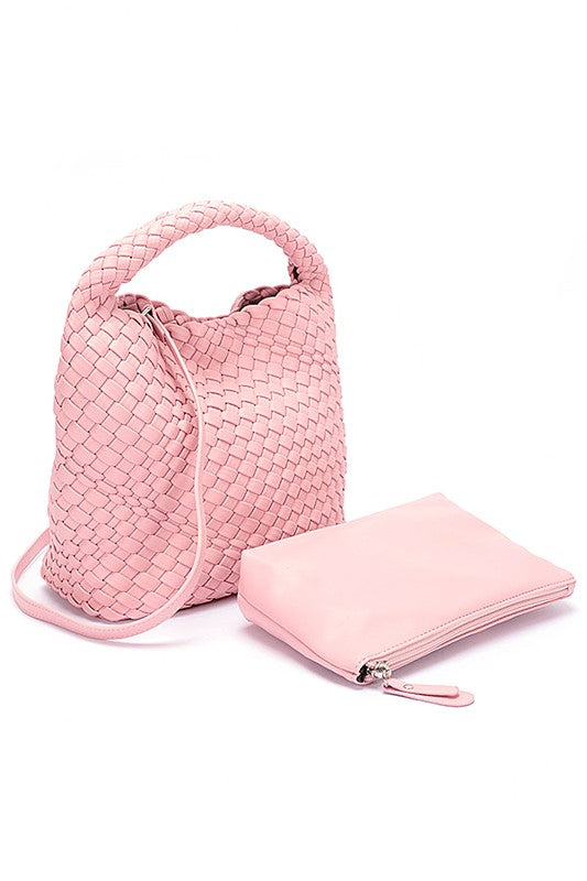 2 In 1 Weaved Faux Leather Top Handle Bag Set
