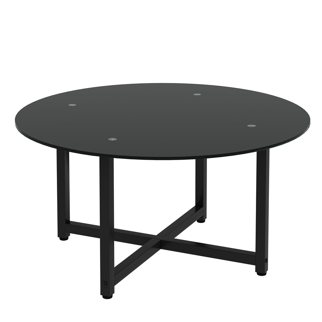 This minimalist style glass round coffee table with a crossed base, allowing you to place and organize your stuff. It has a modern craftsmanship with the combination of metal and glass, able to match with any modern furniture