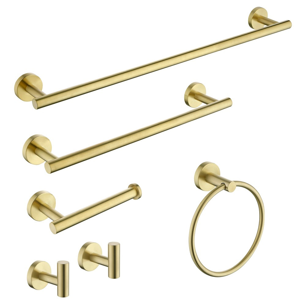 Whether you're renovating your bathroom or simply updating the hardware, the 6-Pieces Brushed Gold Bathroom Hardware Set offers a cohesive and stylish solution for your bathroom needs.