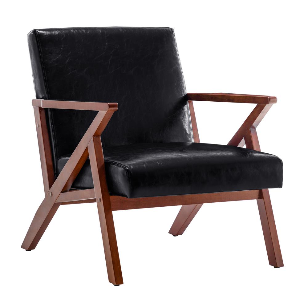Retro yet modern, the Take a Seat Cliff Accent Chair embodies a truly trendy and timeless design. This piece can be placed virtually anywhere and looks fantastic in the family room, living room, bedroom, or home office. Its clean lines and angular design make this accent lounge chair perfect for modern or minimal interiors. Its classic shape showcases an iconic Z-shaped espresso-finished frame built of smooth and sturdy solid wood. The seat and backrest are filled with a dense foam cushion to ensure maximum comfort and are upholstered in luxurious faux leather that's easy to clean. Very versatile, this mid-century modern chair can be styled with or without a decorative pillow for a stylish or minimalistic look. Also included are adjustable feet to accommodate for uneven floors. This beautiful accent piece is easy to put together and is available in several fabrics making it simple to coordinate with current home decor. Create the perfect seating area with a set of matching Take a Seat Cliff Accent Chairs by Convenience Concepts, each sold separately.