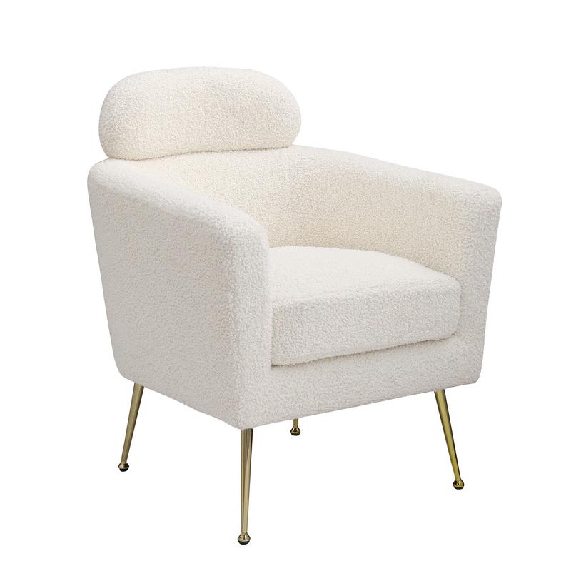 Accent chair with white vegan (faux) fur and gold chrome legs