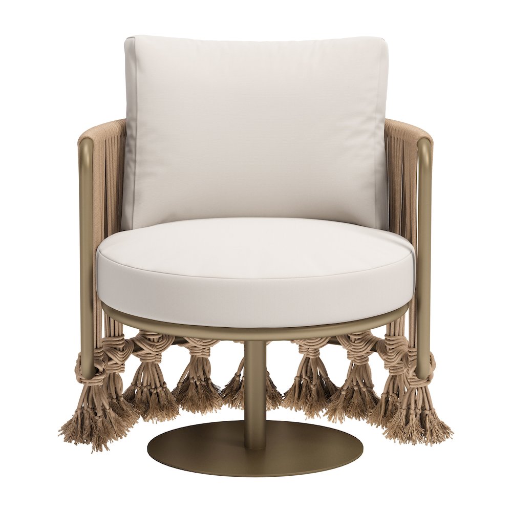 Introducing the Uzel Accent Chair – a perfect addition for outdoor living areas or hotel outdoor seating. Crafted with a powder-coated aluminum frame and adorned with olefin-wrapped cushions, this chair offers a harmonious blend of durability and comfort. The Uzel Accent Chair boasts a contemporary design that seamlessly integrates into any outdoor setting, whether it's your private patio oasis or a hotel's outdoor seating area. Its weather-resistant construction ensures it can withstand the elements, making it a reliable choice for outdoor enjoyment. Enhance your outdoor space with the Uzel Accent Chair, where style meets durability. Whether you're creating a cozy nook in your backyard or elevating the comfort of your hotel's outdoor ambiance, this chair is your ticket to chic and inviting outdoor seating. Embrace alfresco relaxation with the Uzel Accent Chair.