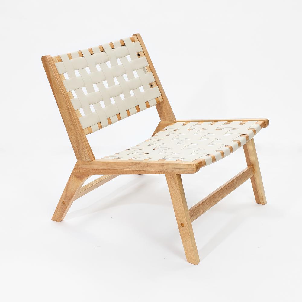 Natural Rubberwood with White Leather Low Profile Armless Accent Chair, Set of 2