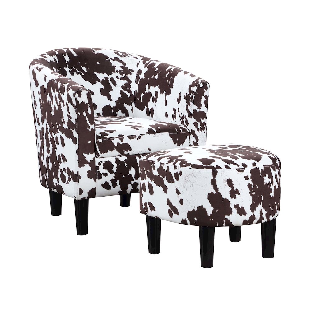 Snuggle up in the Take a Seat Churchill Accent Chair with Ottoman by Convenience Concepts. This comfy contemporary duo gives you the perfect spot to kick up your feet and relax after a hard day of work. Design options are endless and adding a pop of color to any room is easy thanks to the multiple different fabrics available to choose from. This mid-back chair showcases a classic barrel design with a rounded back, curved armrests, and black clean-lined legs. A matching half-oval ottoman with a clean rounded frame perfectly coordinates with the U-shaped chair and gives lavish comfort to your feet and legs. The wooden frame of this sturdy chair and ottoman set is supported by solid rubberwood legs for long-lasting usage. The thick upholstered cushion contains high-density foam, and the faux cowhide fabric lining of the chair includes fine sewing details for a neat and firm finish. This duo, perfect for small spaces, arrives almost fully assembled with only the legs needing to be attached. Cozy up next to the fireplace in the chic Take a Seat Churchill Accent Chair with Ottoman by Convenience Concepts today!