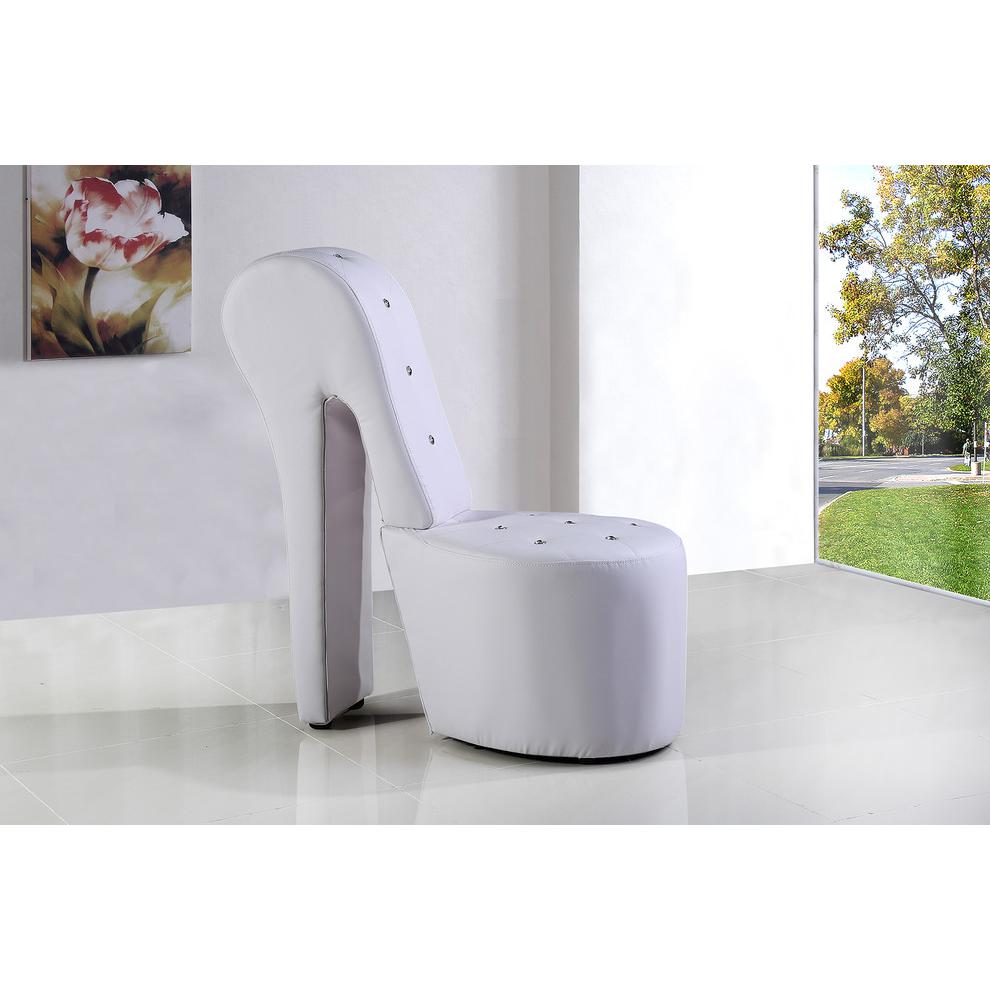 Best Master High Heel Faux Leather Crystal Studs Shoe Chair in White