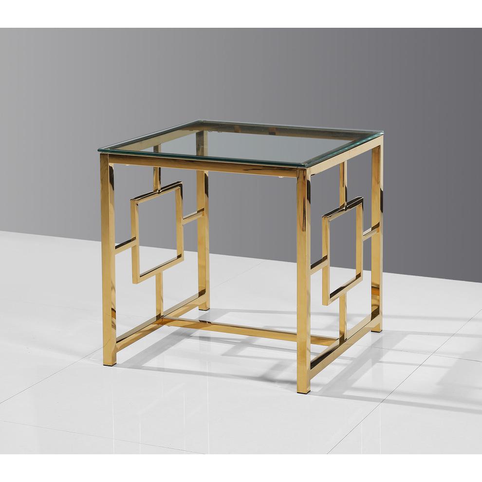 Best Master Stainless Steel and Glass End Table in Clear/Gold Base