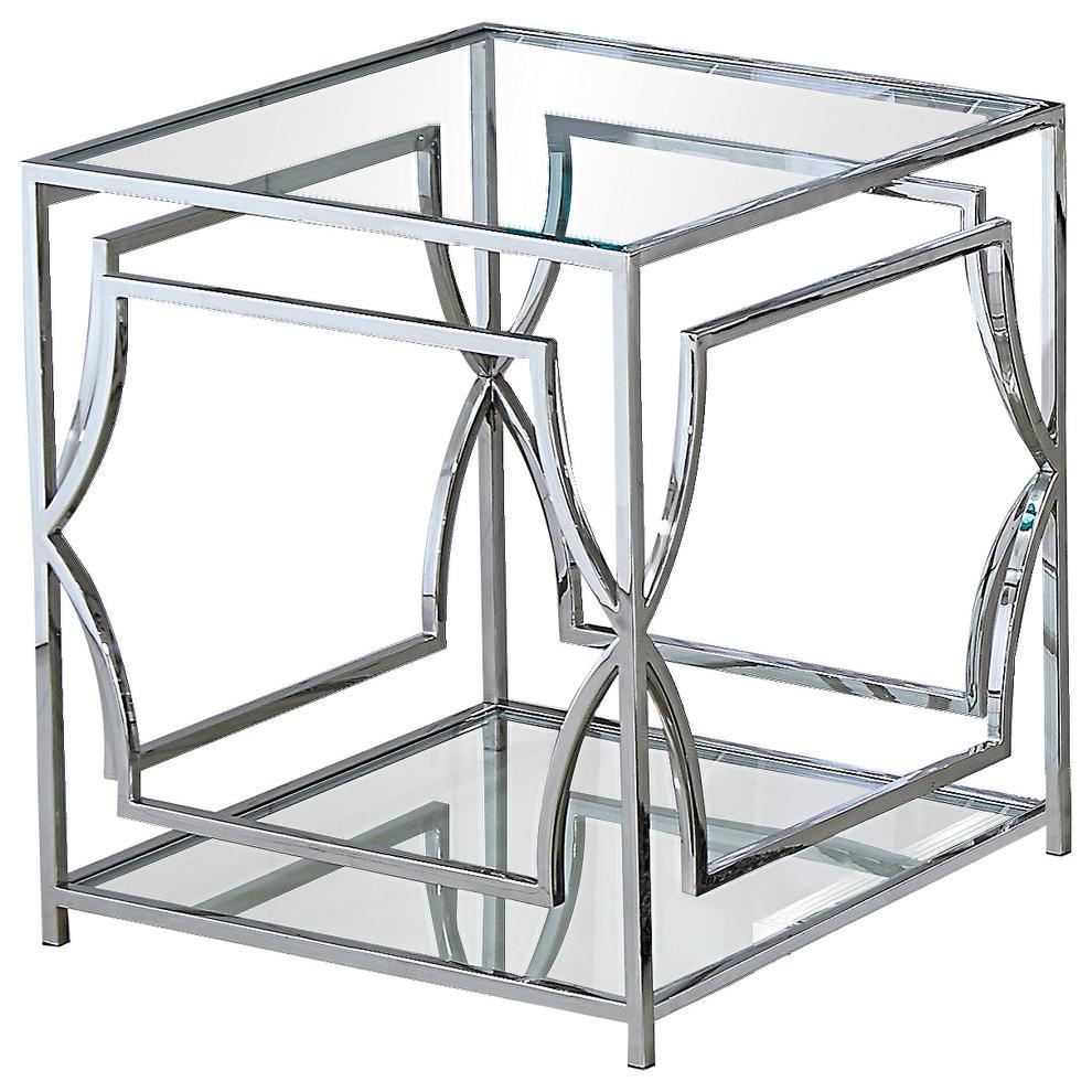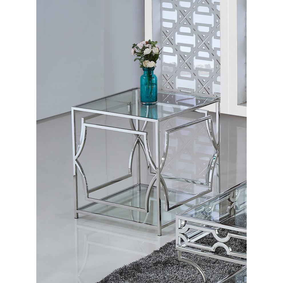 Best Master Furniture Abigail Glass and Stainless Steel Base End Table in Silver