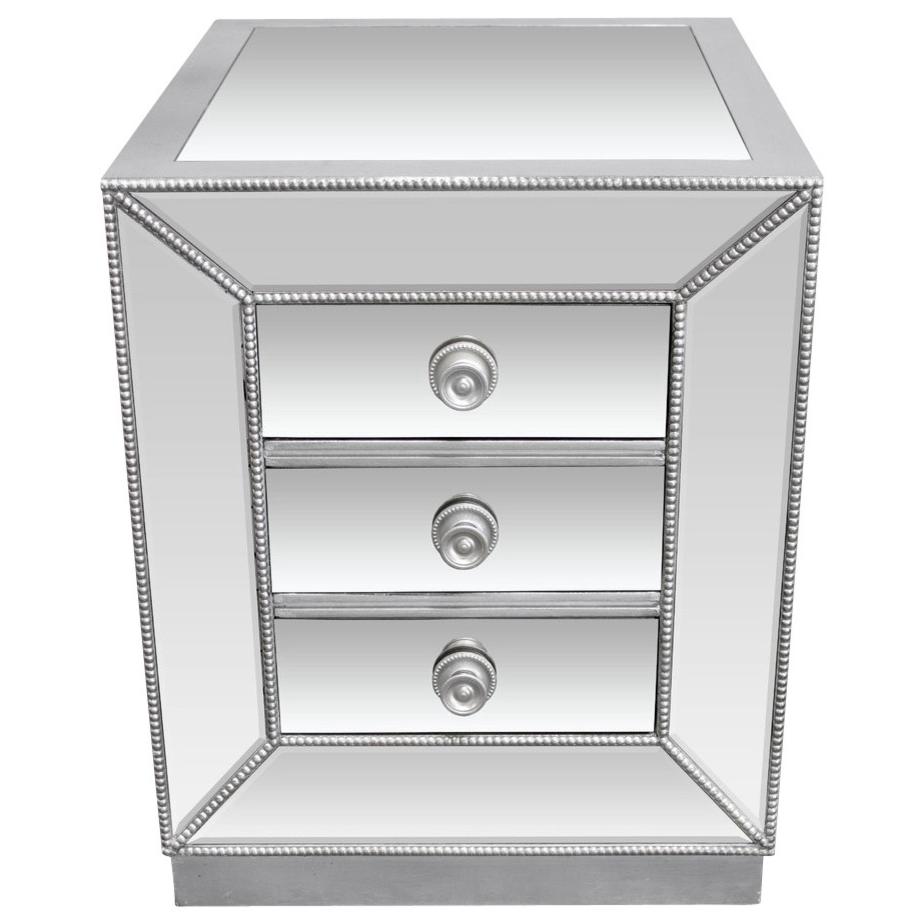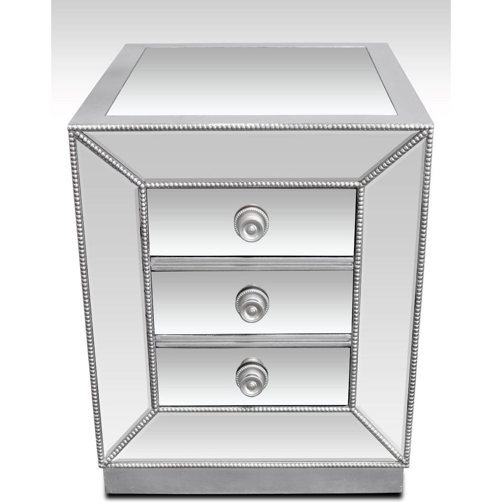 Best Master Furniture Solid Wood and Mirrored Living Room End Table in Silver