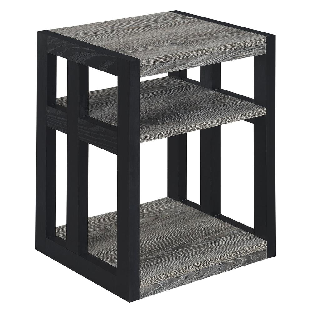 With a clean line silhouette; the Monterey 3 Tier End Table by Convenience Concepts is the perfect addition to your living space. Its stylish contemporary design will refresh your home decor. With three tiers; this unit will optimize both your storage and display space. Its tiers are ample enough for your favorite lamp; a book and a woven storage basket to keep all your living room essentials within reach. Fashioned from particle board and finished with a rich melamine veneer; makes it easy to maintain and long lasting. Its unique side frame design makes this item a must have piece! Do not wait! Bring home this beautiful accent table today! The clear and simple assembly instructions only require a total of 4 steps; making sure you enjoy this furniture just minutes after delivery. Love this design? Complete the look with the Monterey Square Coffee Table and the Monterey Console Table by Convenience Concepts. Each sold separately.