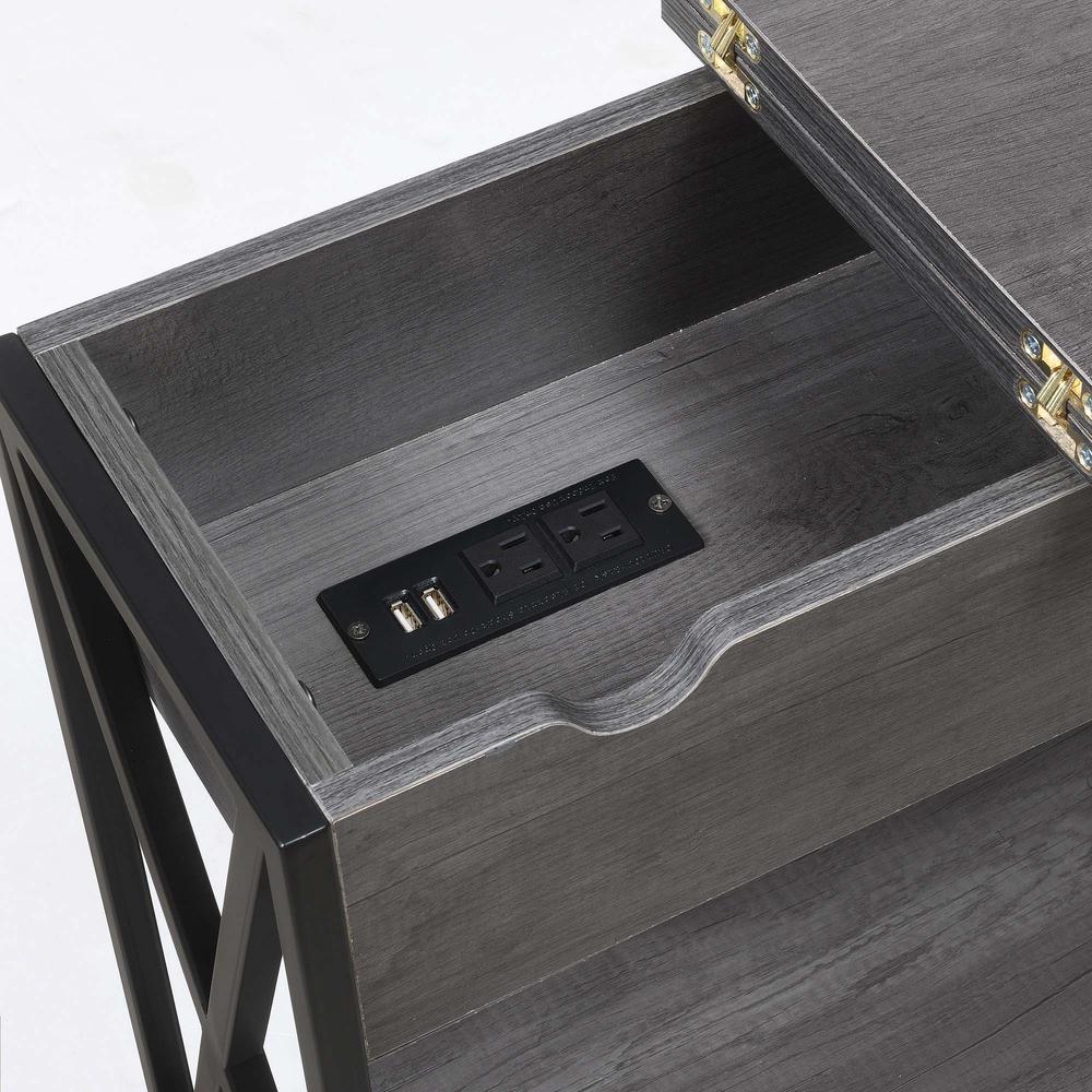 Tucson Flip Top End Table with Charging Station and Shelf