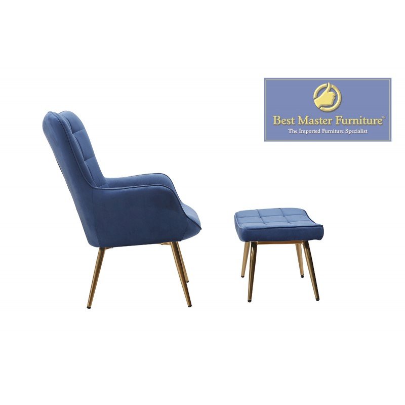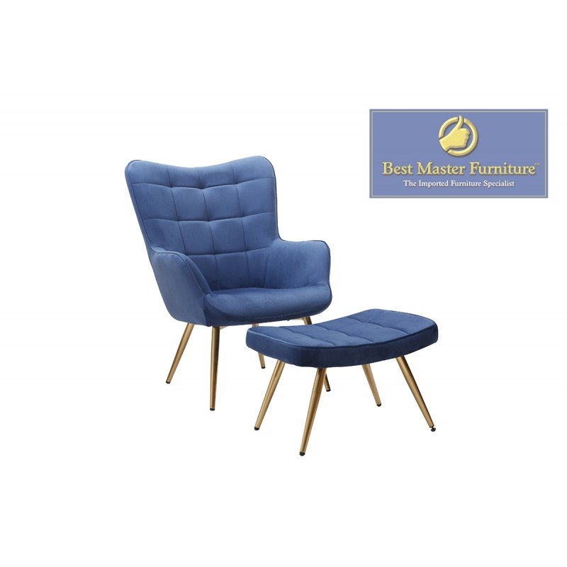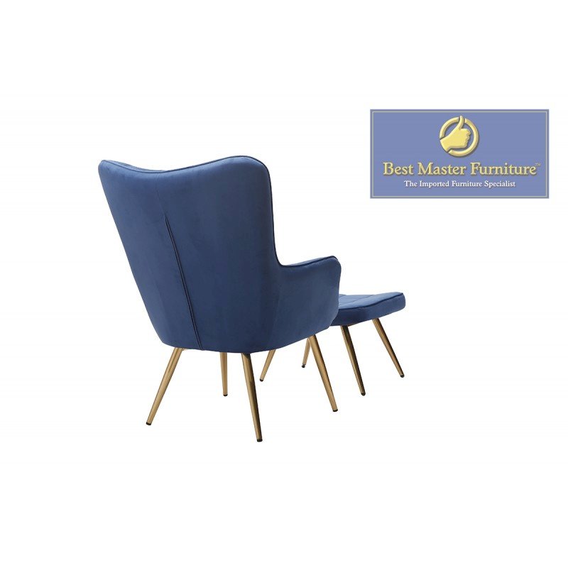 Best Master Furniture West China Velvet Accent Chair and Ottoman Set in Blue