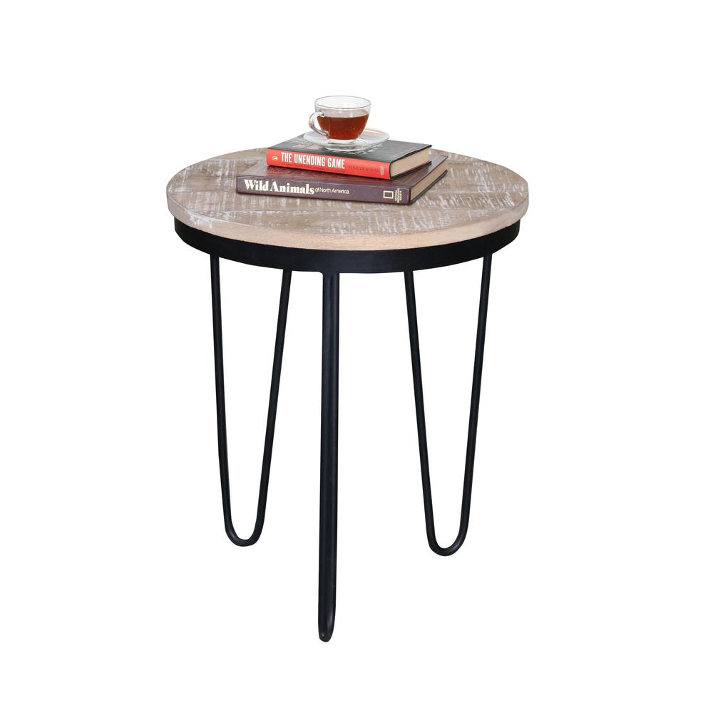 Round End Table - Tan/Black