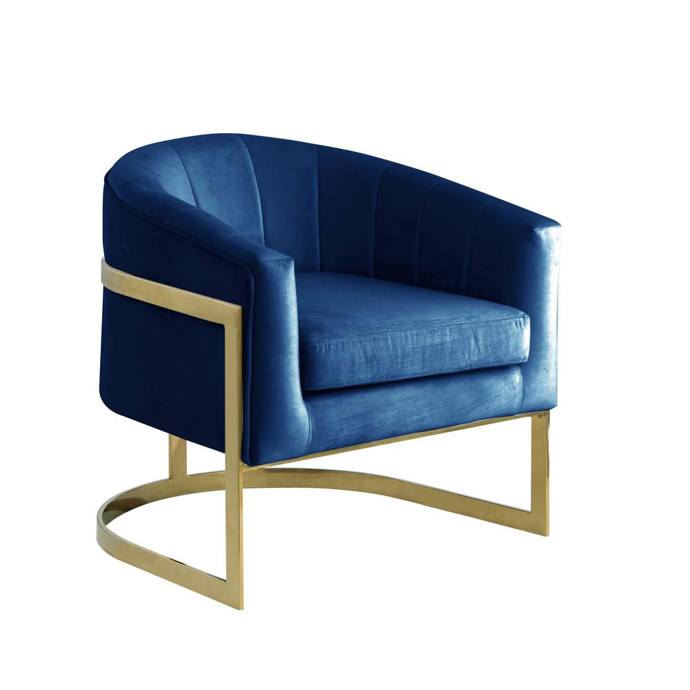 Traxmon Velvet Upholstered Accent Chair in Blue Velvet
