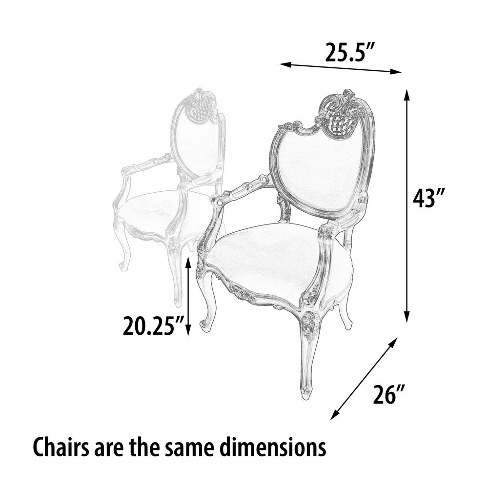 Our French Rococo Fireside Chairs-Pair is a beautiful example of a style of furnishings, originating in France about 1720, evolved from Baroque styling, Rococo style was an evolvement of elegant refinement and a more delicate overall effect. The pair of chairs offered were designed as a set with symmetrical carvings. The chairs are hand carved out of solid Mahogany and finished in an extensive hand applied stunning gold leaf and upholstered in a fine red velvet fabric. Another exclusive design and finish from our Heritage Collection, a collection of fine, hand made furniture in the purest of standards of age old traditional crafting. Each piece is hand carved, one piece at a time, by some of the world's best carvers. The special Mahogany wood comes from replanted forests. The selected wood has been kiln dried. The item in its final form is stress and pressure tested prior to finishing to insure long lasting stability, in most all climates, a Heritage Brand standard. The chairs comes fully assembled, a process of finer construction offering a more stable seating. Made by hand and imported from Indonesia.