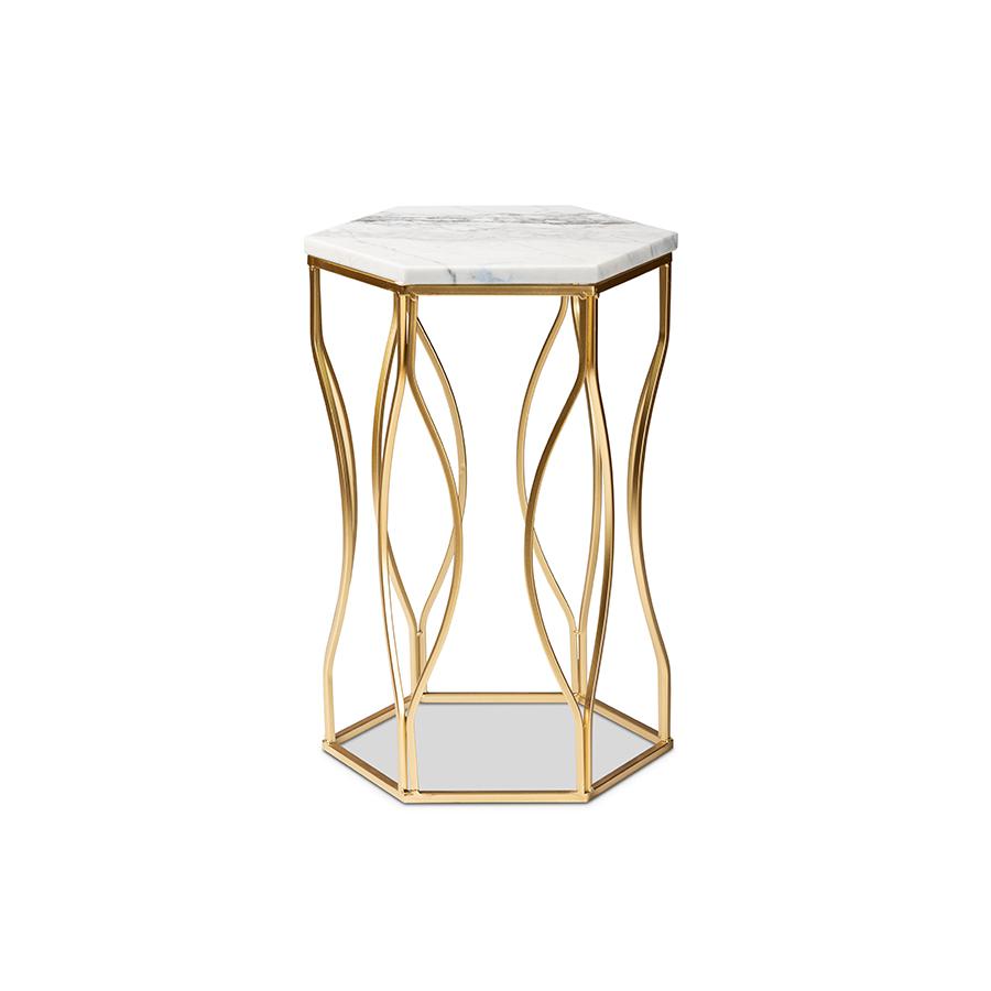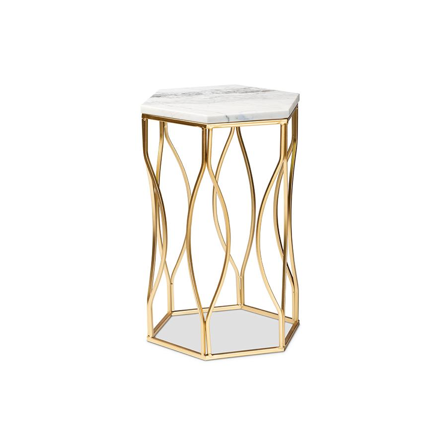 Kalena Modern and Contemporary Gold Metal End Table with Marble Tabletop