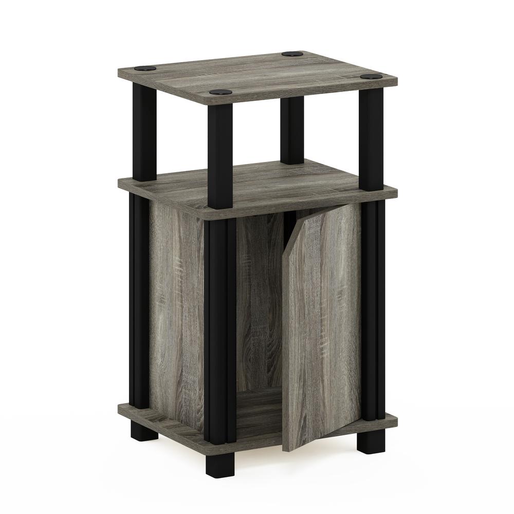 Furinno Just 3-Tier End Table with Door, French Oak/Black
