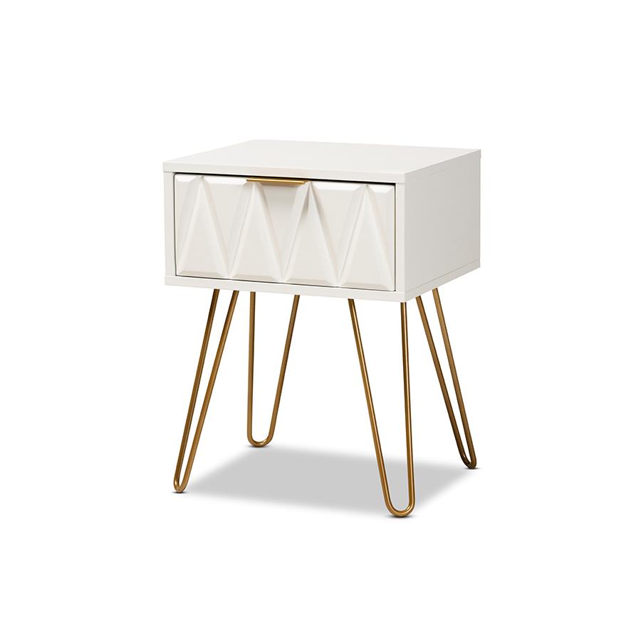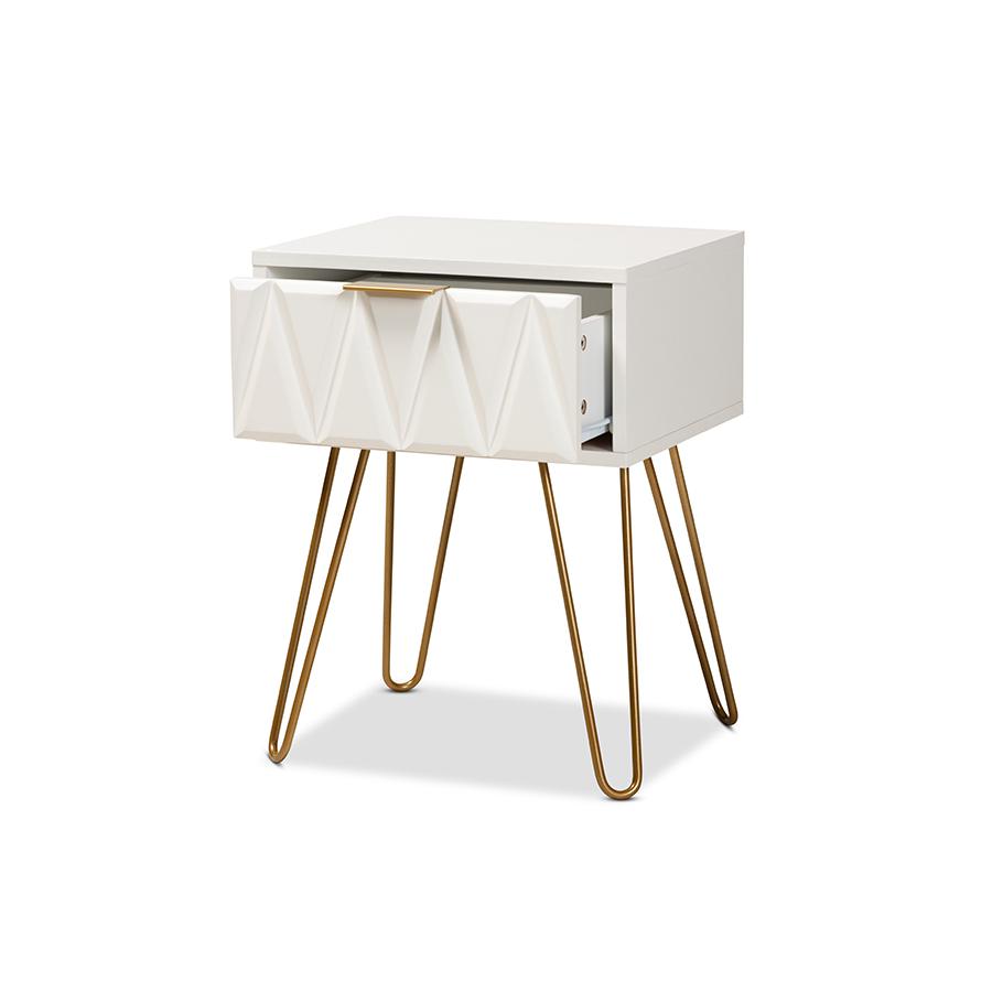 Glam and Luxe White Finished Wood and Gold Metal 1-Drawer End Table