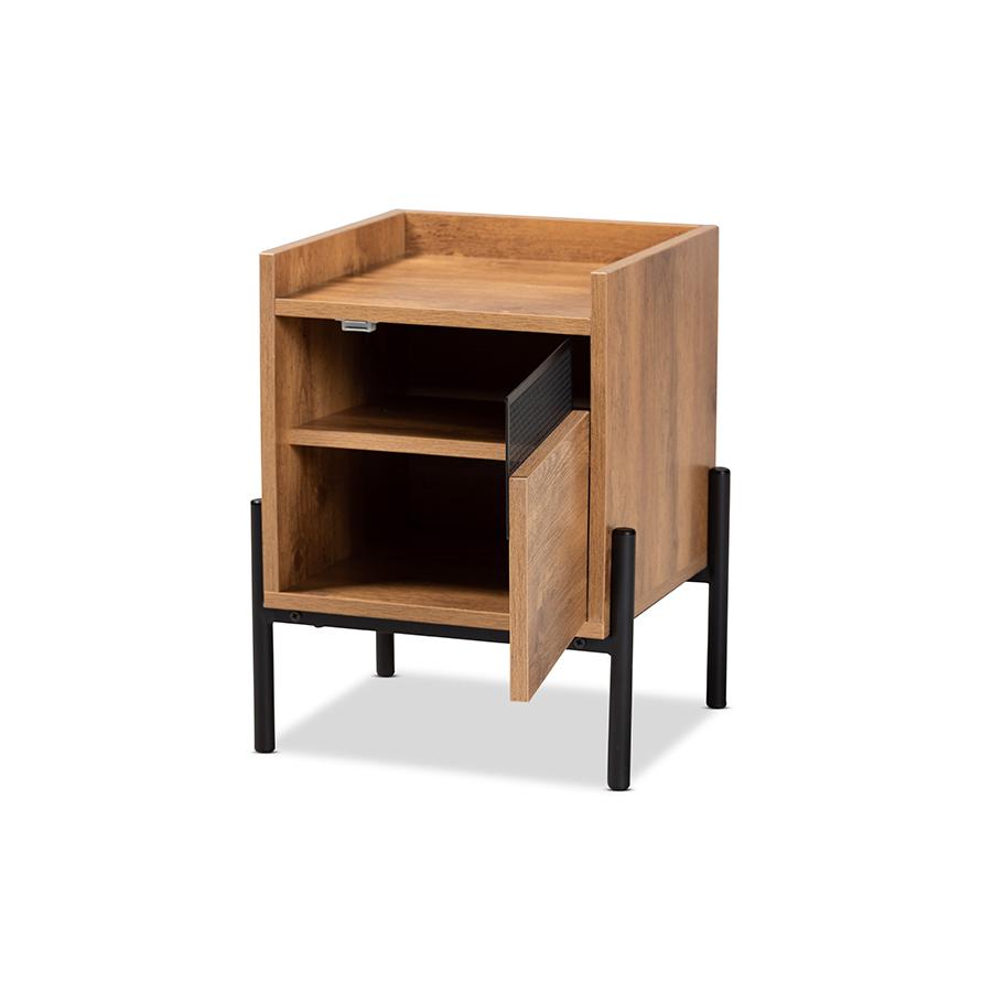 Industrial Natural Brown Finished Wood and Black Metal End Table