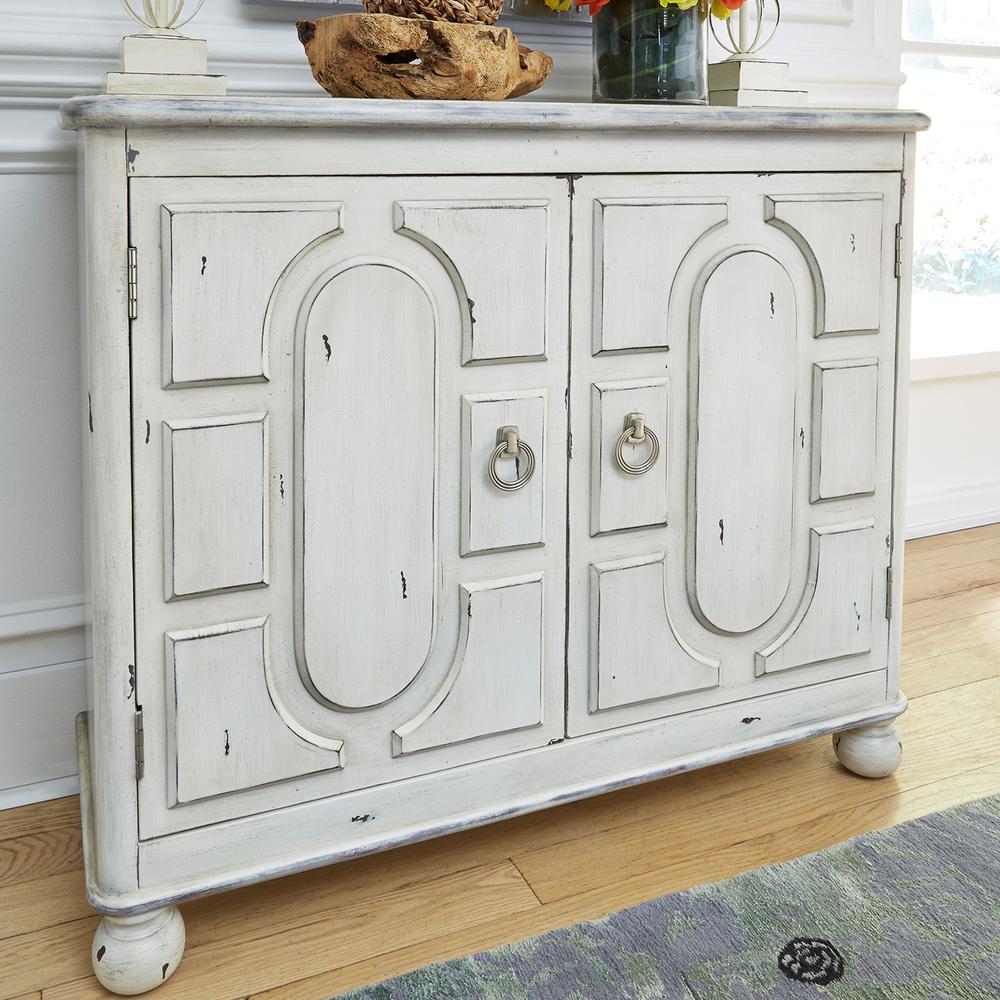 2 Door Accent Cabinet, Antique White Finish w/ Black Spatter