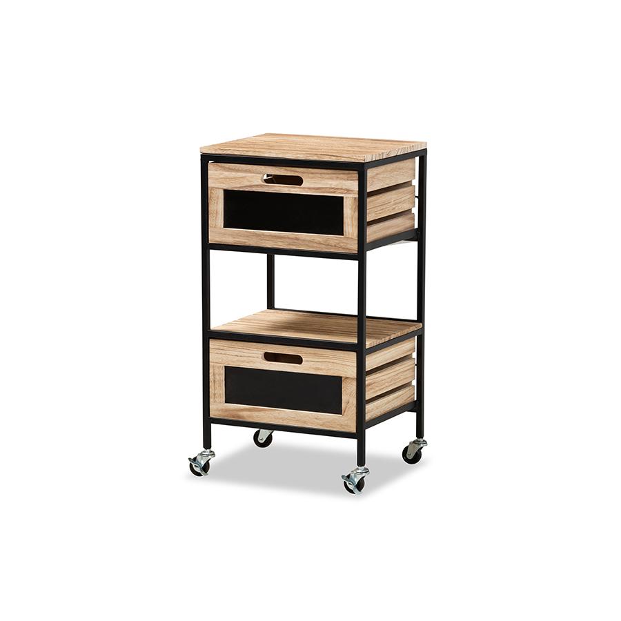 Industrial Oak Brown Finished Wood and Black Metal 2-Drawer End Table