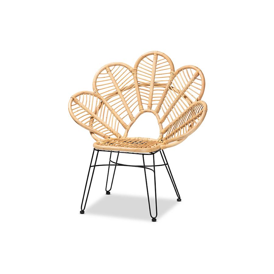 Bohemian Natural Brown Rattan and Black Metal Accent Chair