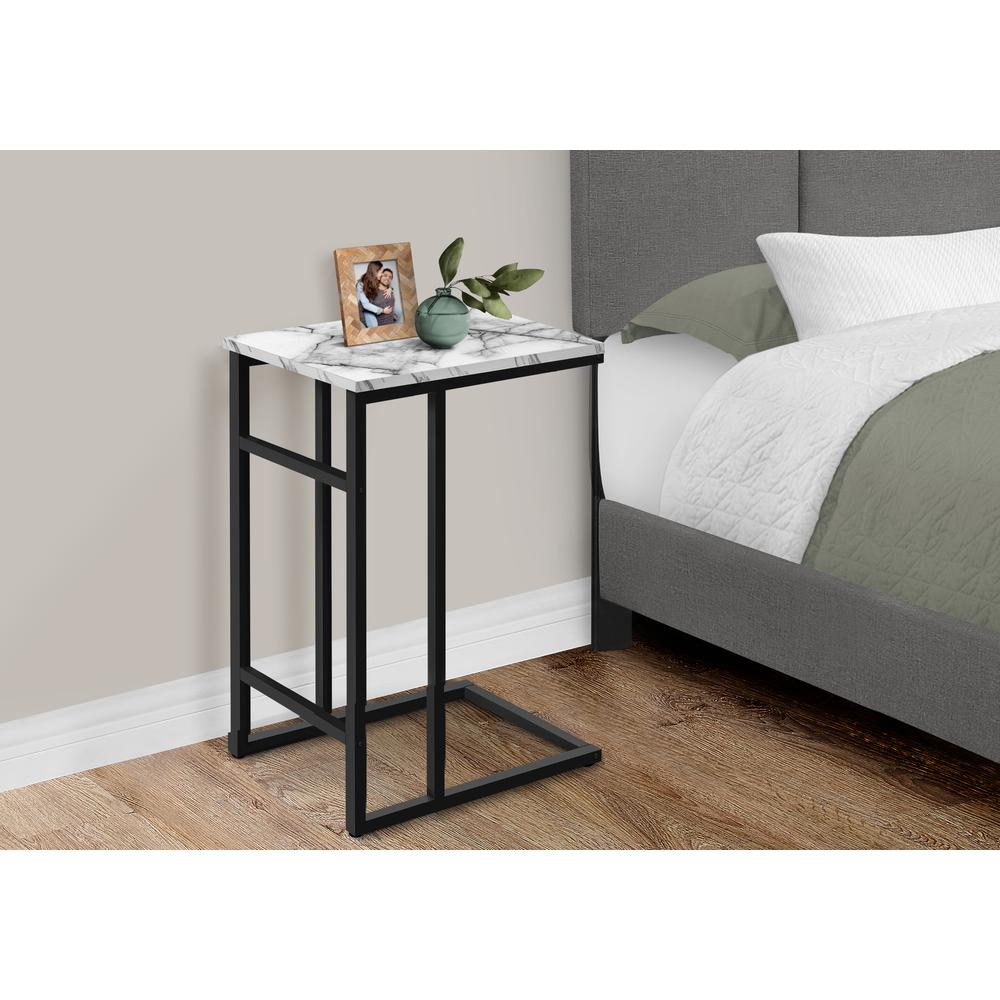 Accent Table, C-shaped, End, Side, Snack, Living Room, Bedroom, White Marble