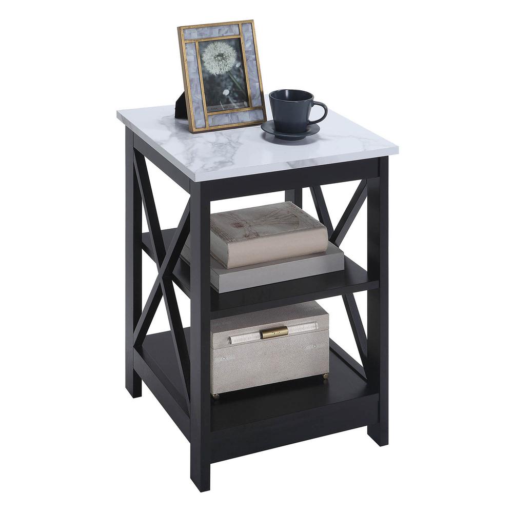 Create a welcoming yet stylish home environment with the Oxford End Table with Shelves from Convenience Concepts. This chic transitional side table is just what you were looking for to renovate any living space. Available in multiple finishes, the Oxford End Table with Shelves will complement existing home furnishings while still offering a fresh new look. Three tiers of open concept shelving are accompanied by beautiful X frame side panels that will complete any coastal or farmhouse-themed decorated space. Plenty of room is available to display decorative pieces or to keep family room essentials close at hand thanks to three spacious shelves. Built from sturdy manufactured wood and carefully painted with non-lead-based paint, this table is built to last. Coordinate this table with additional pieces from the Oxford Collection by Convenience Concepts, each sold separately.