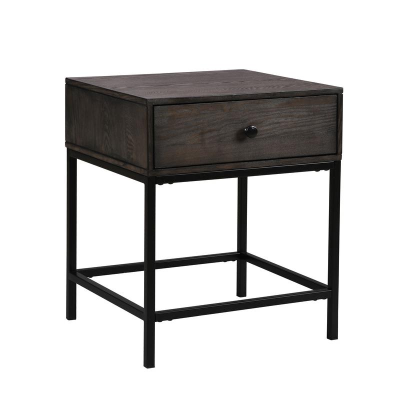 Ava Espresso MDF End Table with Charging Ports and Metal Base