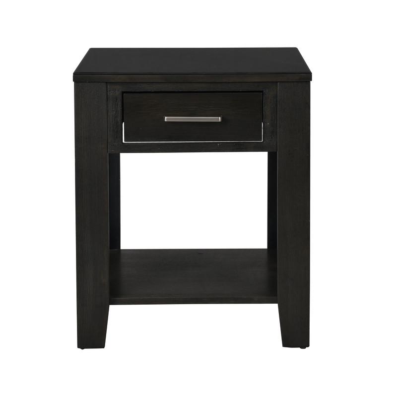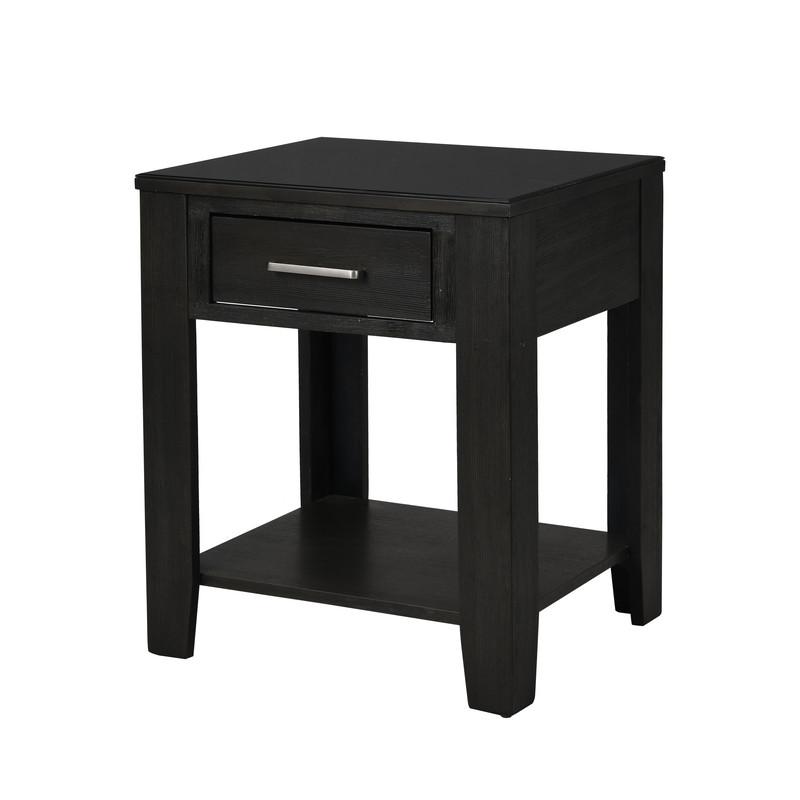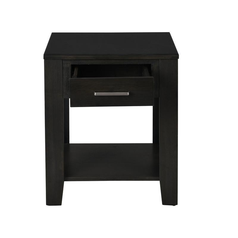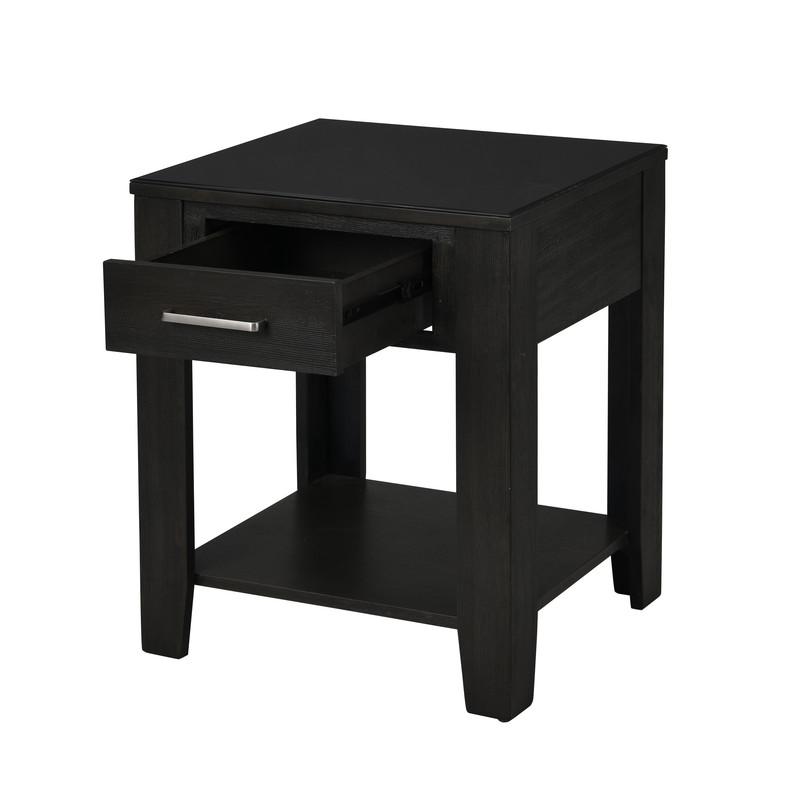 Bruno Ash Gray Wooden End Table with Tempered Glass Top and Drawer