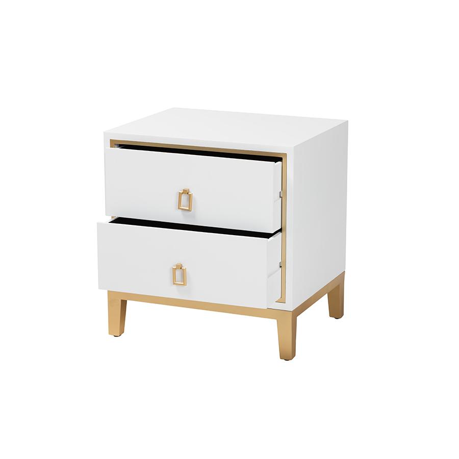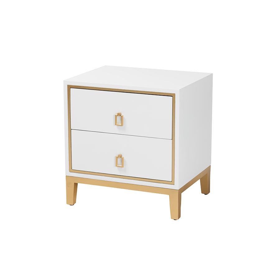 Glam and Luxe White Finished Wood and Gold Metal 2-Drawer End Table