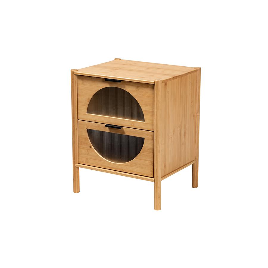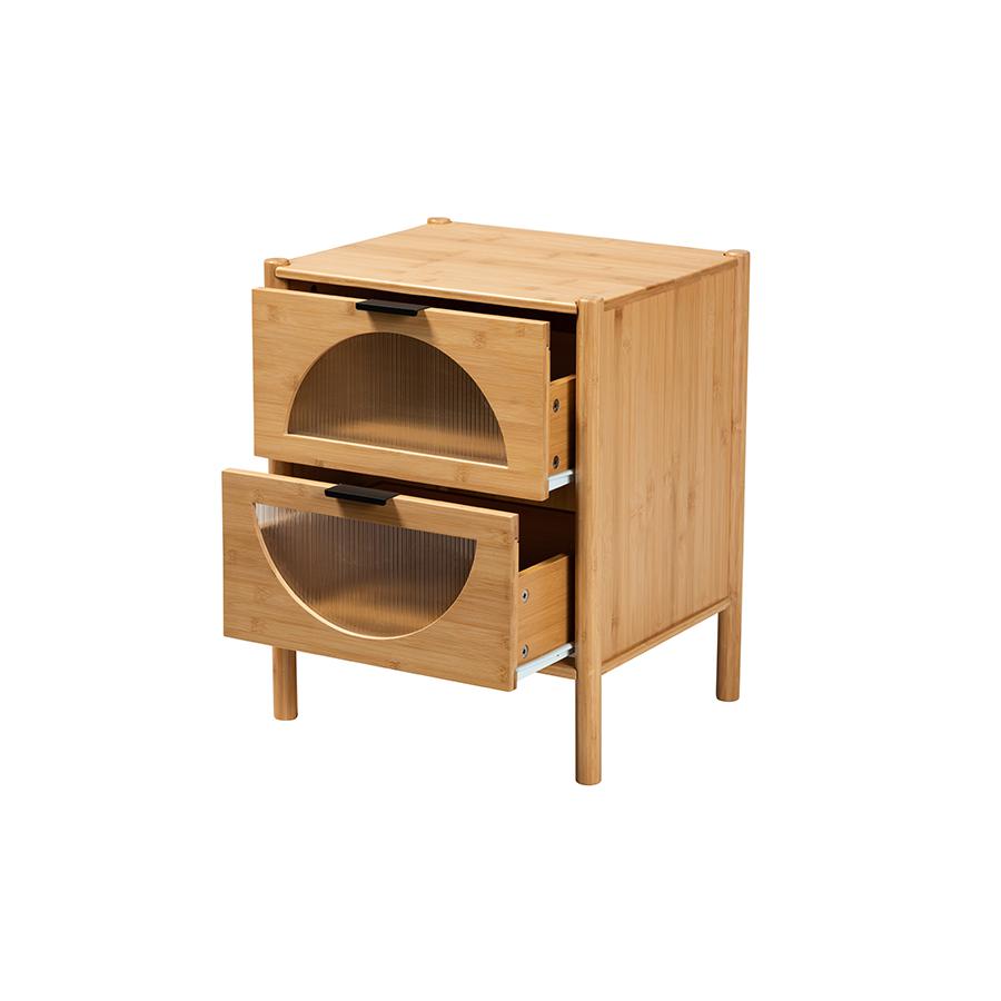 Transitional Natural Brown Bamboo Wood 2-Drawer End Table