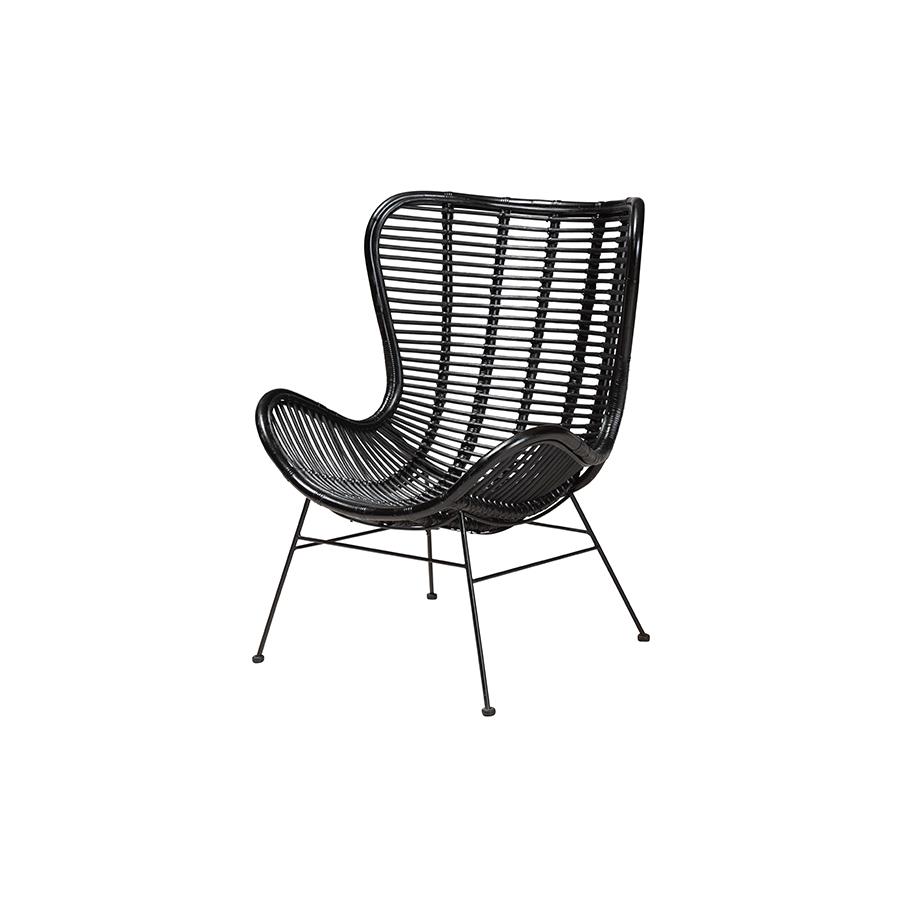 bali & pari Colorado Modern Bohemian Black Rattan and Metal Accent Chair