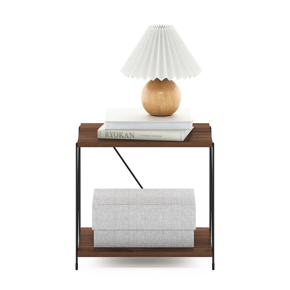 Furinno Besi Industrial Multipurpose Side Table with Metal Frame, Walnut Cove