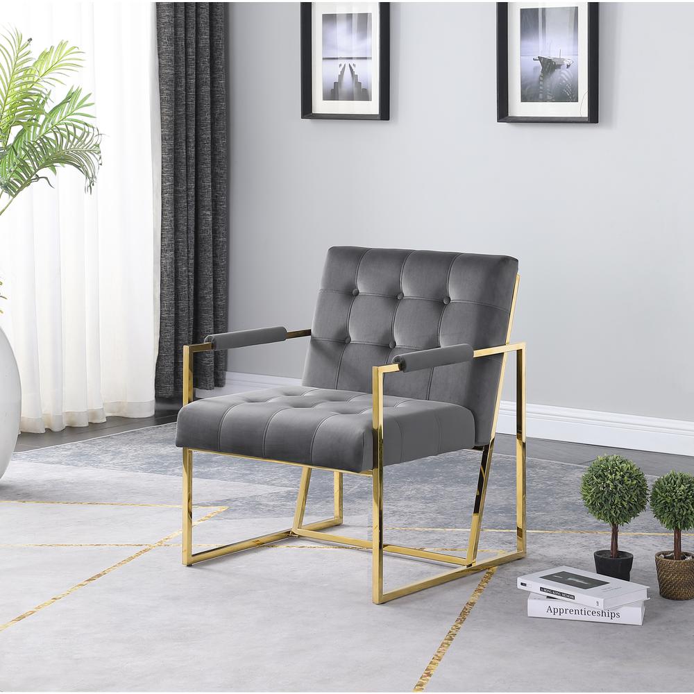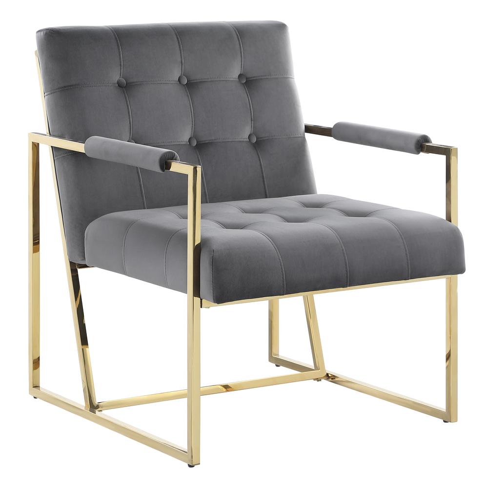 Luxor Gray Velvet Modern Accent Chair in Gold