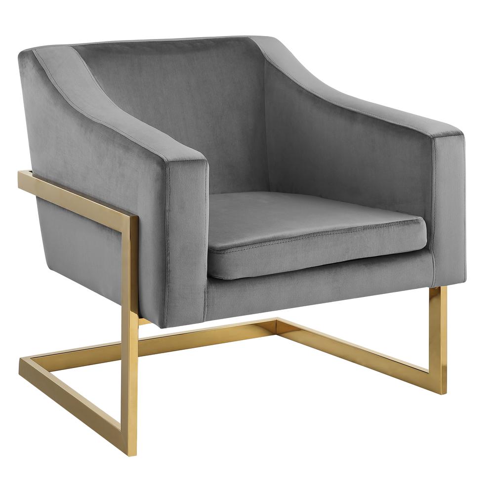 Hampshire Gray Velvet with Gold Stainless Steel Modern Accent Chair