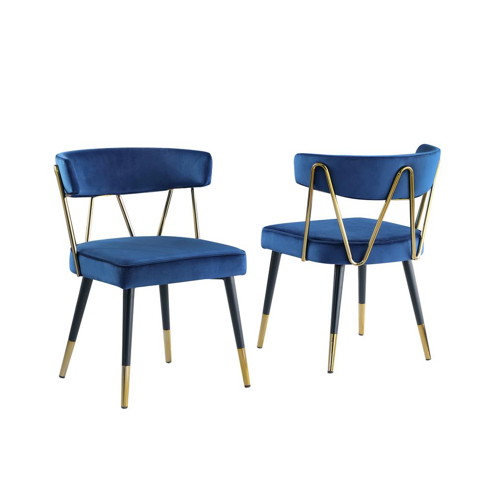 Aireys Navy Velvet Armless Chair with Gold Accents (Set of 2)
