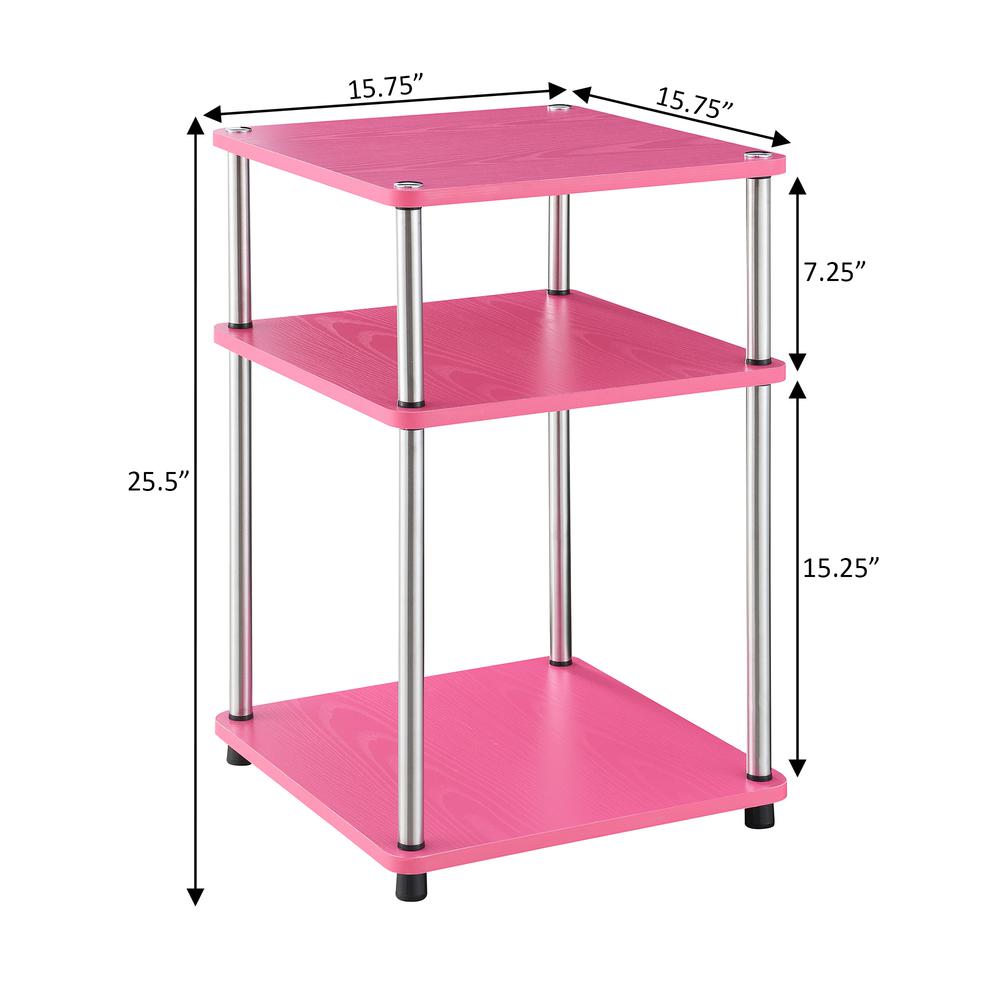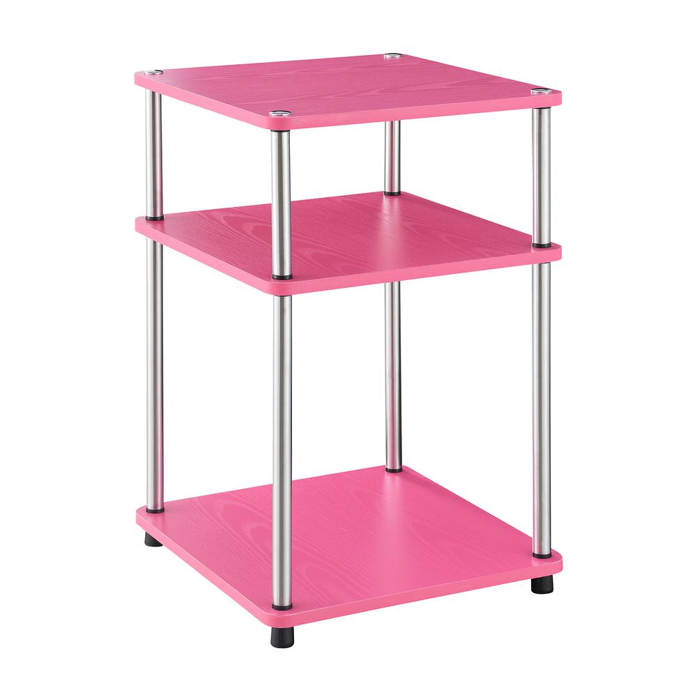 Modern; stylish; and easy to maintain; the Designs2Go No Tools 3 Tier End Table by Convenience Concepts has it all! This spacious three-tier table offers plenty of space to place plants; display decorative pieces; store bathroom essentials; house office essentials; and much more! Versatility is endless with this unique and contemporary piece which is also available in multiple finishes. The sturdy frame is rust-resistant and very easy to assemble thanks to the stainless-steel poles. Each shelf is built from manufactured wood and finished with a detailed woodgrain melamine finish. This unit also includes plastic caps with rubber soles that cover the bottom to help protect your floors. Easy no tools assembly allows for this piece to be assembled right after delivery. Shop additional pieces from the Designs2Go No Tools Collection by Convenience Concepts; each sold separately.