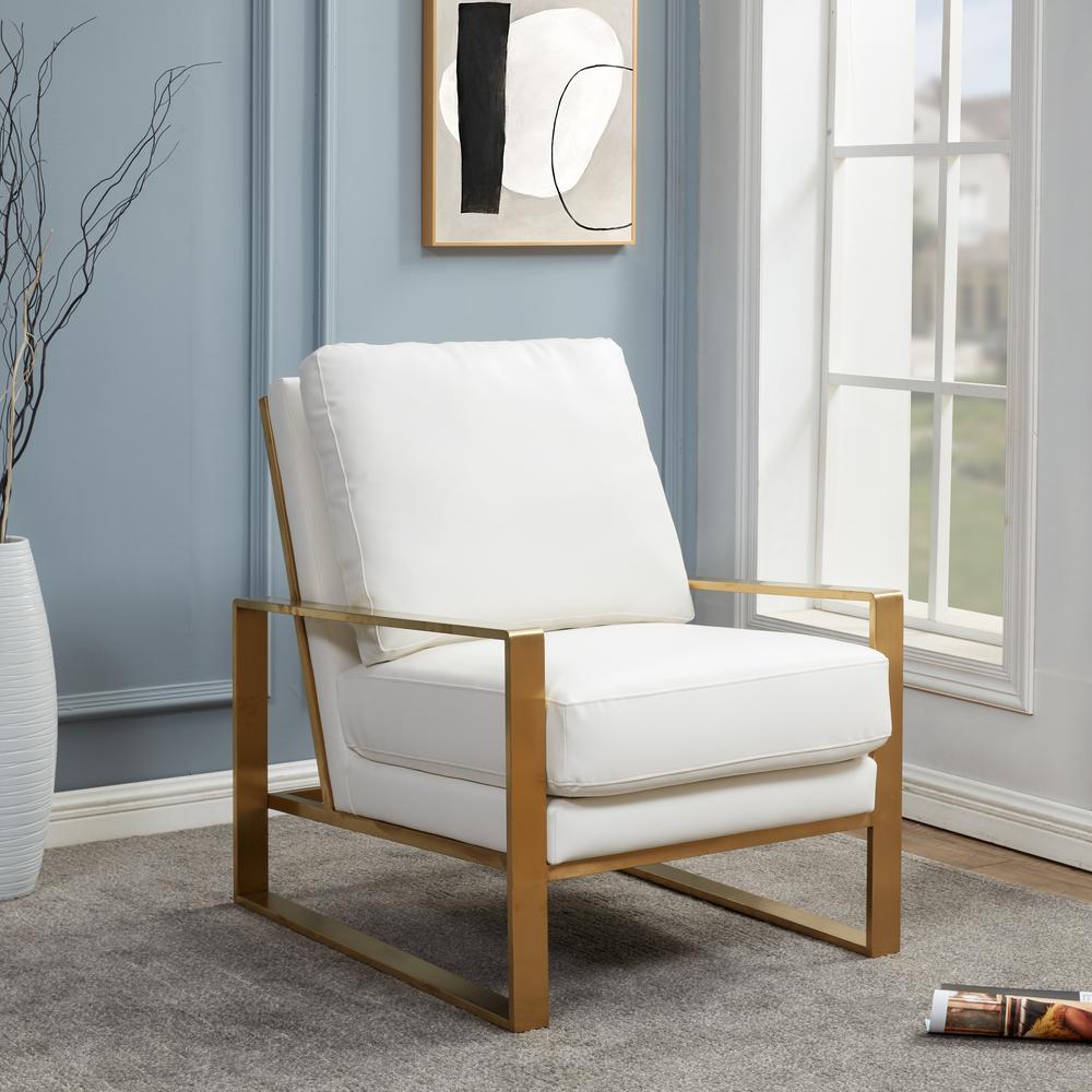 LeisureMod Jefferson Leather Modern Design Accent Armchair With Elegant Gold Frame, White