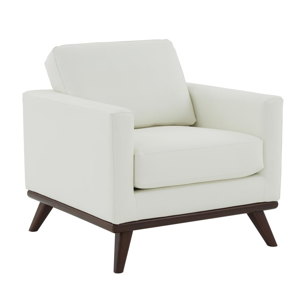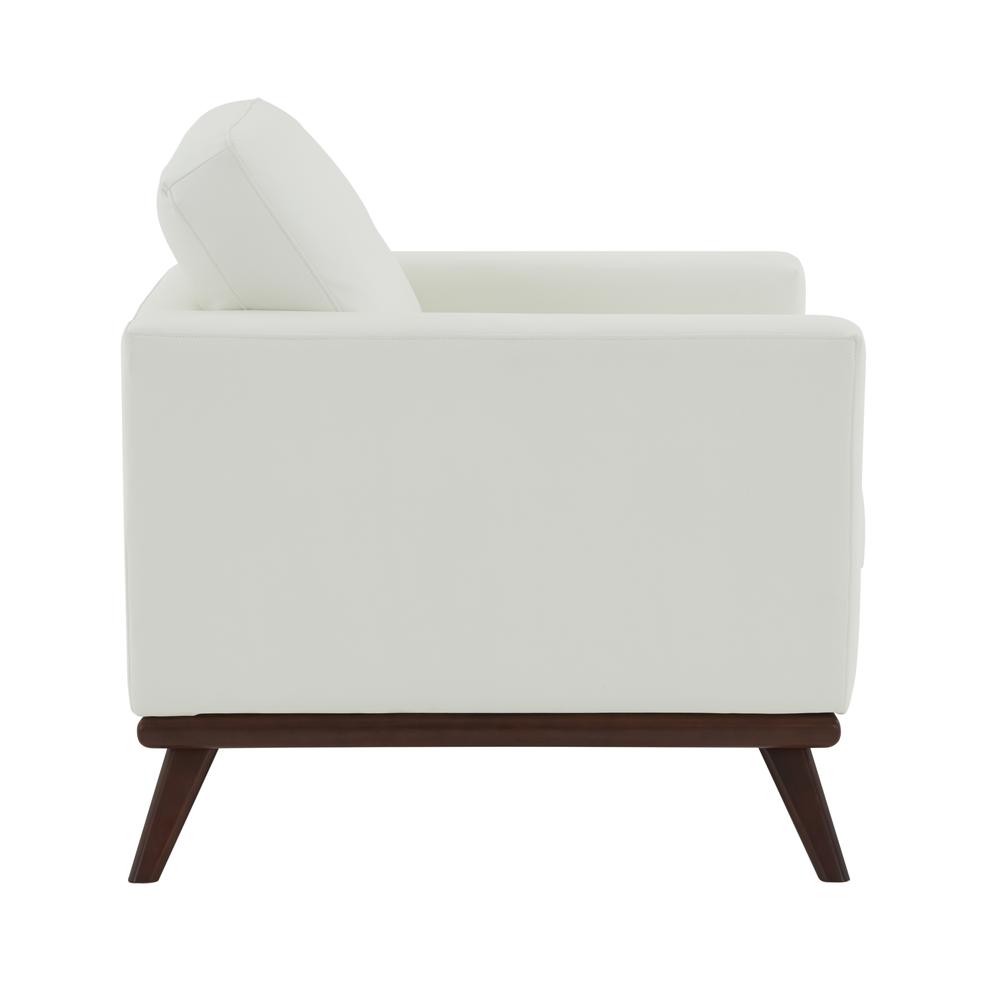 LeisureMod Chester Modern Leather Accent Arm Chair With Birch Wood Base, White