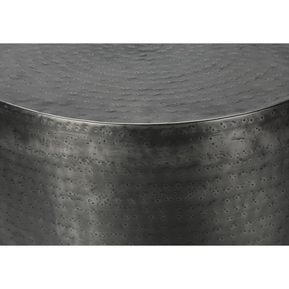 Add character and beauty to your home with this fashionable 22 high drum accent table in a silver grey metal finish. Hand crafted and durably designed with iron metal for an eye-catching textured finish this versatile and functional side table makes a warm statement whether you place it as an end table in a living room or bring it into your bedroom as a nightstand for a chic boho-glam vibe. With its practical space saving design you can easily tuck it between furniture with plenty of room on top for a small lamp book or a decorative object. This metal drum table works well in all decor styles including contemporary and modern spaces. No assembly is required which means it is ready to use and elevate a room instantly! To ensure you are receiving a high quality product this round accent table is backed by a 5 year limited warranty against manufacturer's defects for a worry-free purchase. This metal table is for indoor use only.