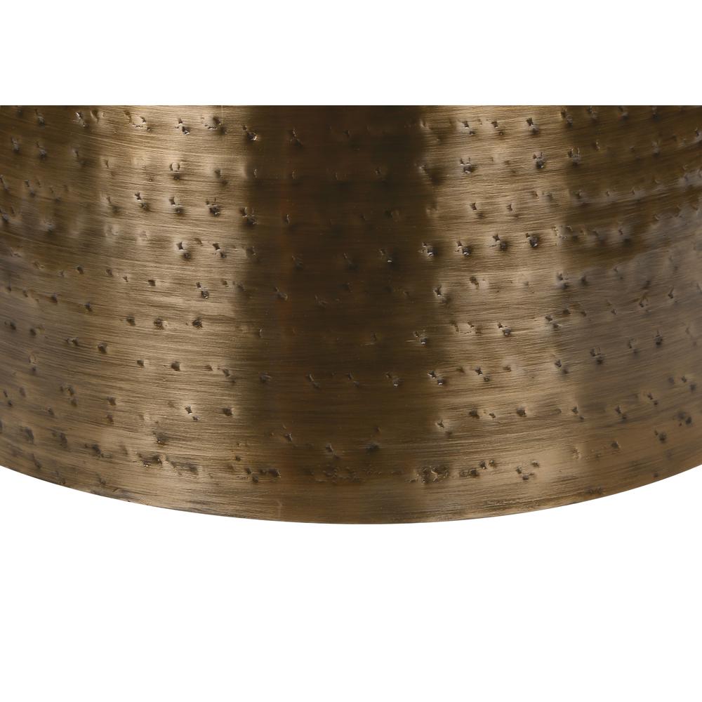Introduce a bold and beautiful way to bring fashion and function to any room in your home with this hand- crafted side accent table in a luxurious copper metal finish. This space saving accent table stands 22 high with a sleek bell shaped base and an all over hammered texture for a subtle glamorous touch. This practical furniture piece serves many purposes whether it's used as a side table next to a chair in your living room near a sofa as an end table with a small lamp on top or bring it into the bedroom as a sophisticated nightstand. The best part is this drum table requires no assembly just take it out of the box and bring that instant glam factor to a room! Made with high quality iron metal material this durably designed table is backed with a 5 year limited warranty against manufacturer's defects to ensure your satisfaction. This sculptural shaped table works well in all decor styles including contemporary and modern spaces. For indoor use only.