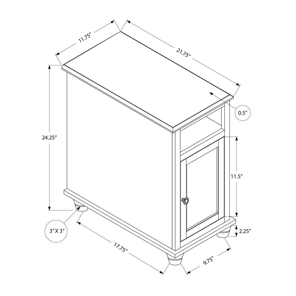If you want an accent table that combines both practicality and style, then take a look at this 24 inch high side table with a warm antique white and espresso brown veneer finish. This fashionable side accent table with an easy to clean top is perfect to set next to a sofa or chair in your living room, or add a reading lamp on top and place in your bedroom as a charming nightstand. This traditionally designed, space saving end table has plenty of storage options that include an open shelf to tuck away a book or a small basket, and a built-in cabinet accented with elegant metal knob in an antique bronze finish, great for storing other essential items. Durably designed in wood materials and easy to assemble with full illustrated instructions and hardware, you will enjoy this narrow side table in your home for years to come. A 5 year limited warranty against manufacturer's defect is included to assure you are purchasing a quality piece of furniture.