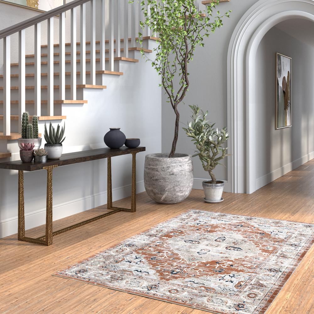 Summit Rawlins Rust/Natural/Blue Area Rug, 3'11" x 5'7"