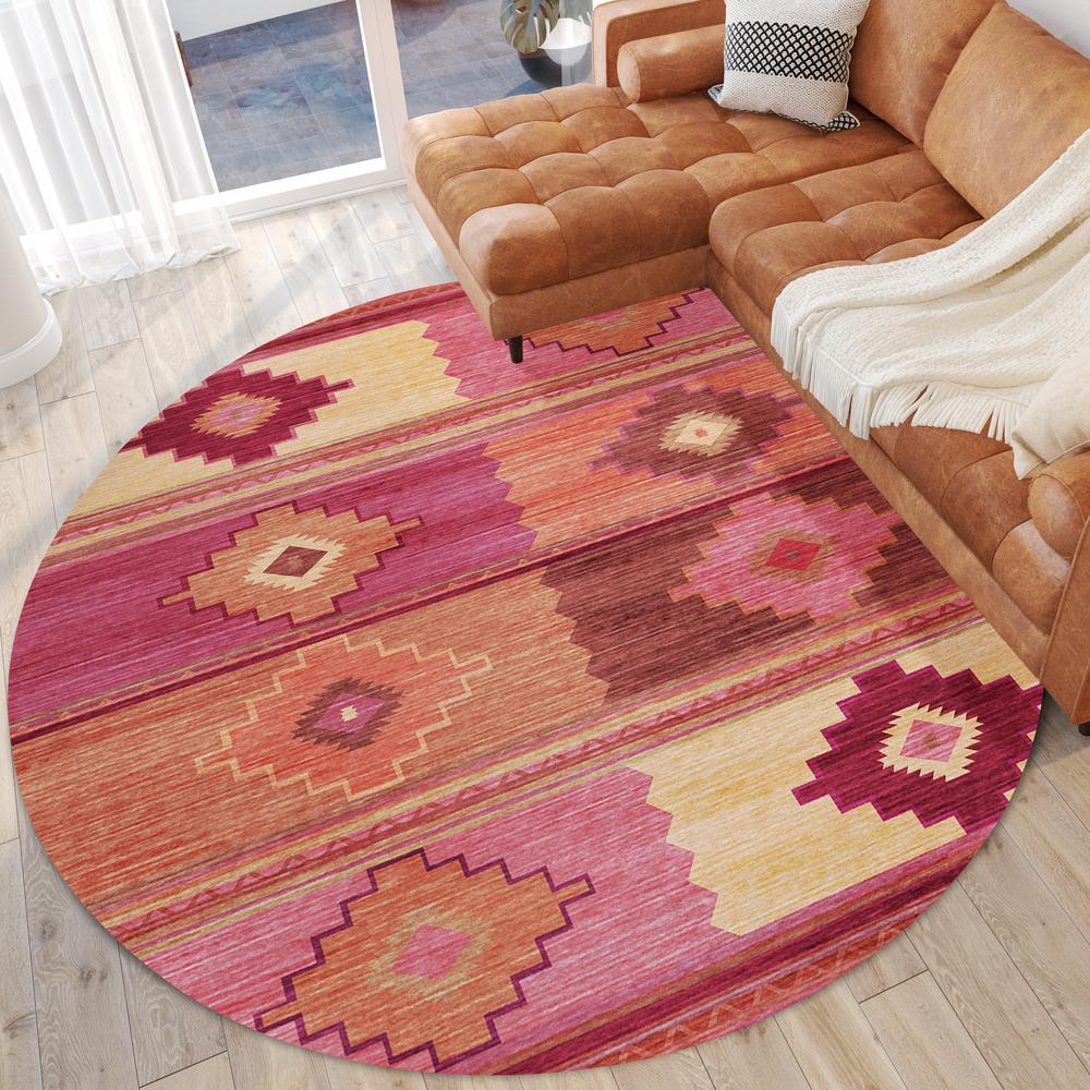 Indoor/Outdoor Sonora ASO31 Pink Washable 8' x 8' Round Rug