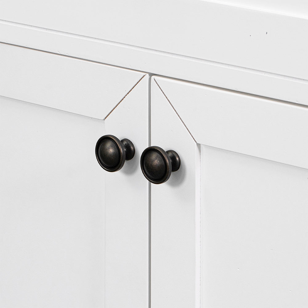 This freestanding white vanity cabinet with black handles effortlessly blends with various decoration styles. The thoughtfully designed groove pattern on the door and drawer adds a touch of artistry and aesthetics to your home environment.