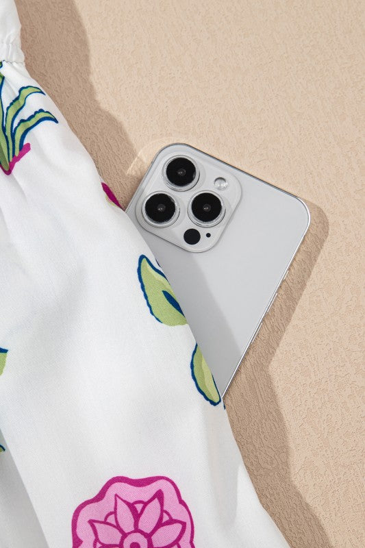 Blue Floral Ruffle Hem Pop of Color Neckline Dress