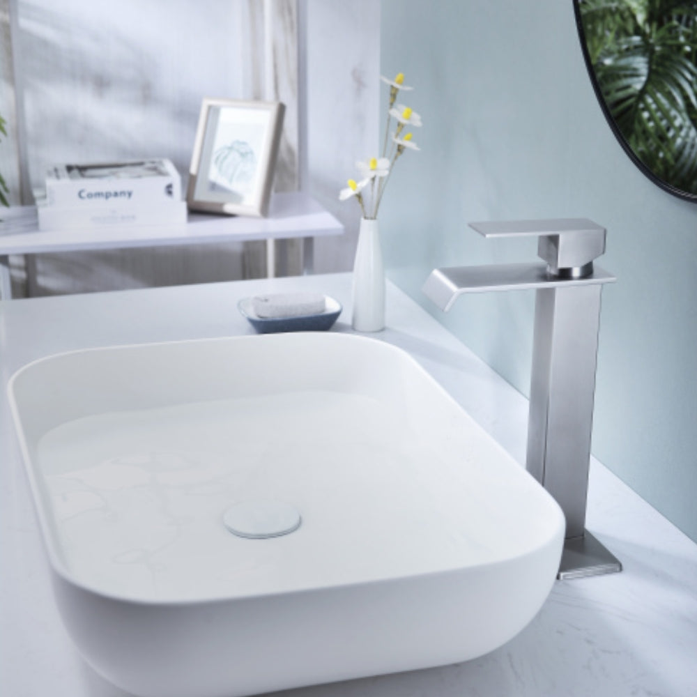 The waterfall nozzle design ensures a stable laminar waterfall flow, enhancing the user experience with a smooth and steady water stream.