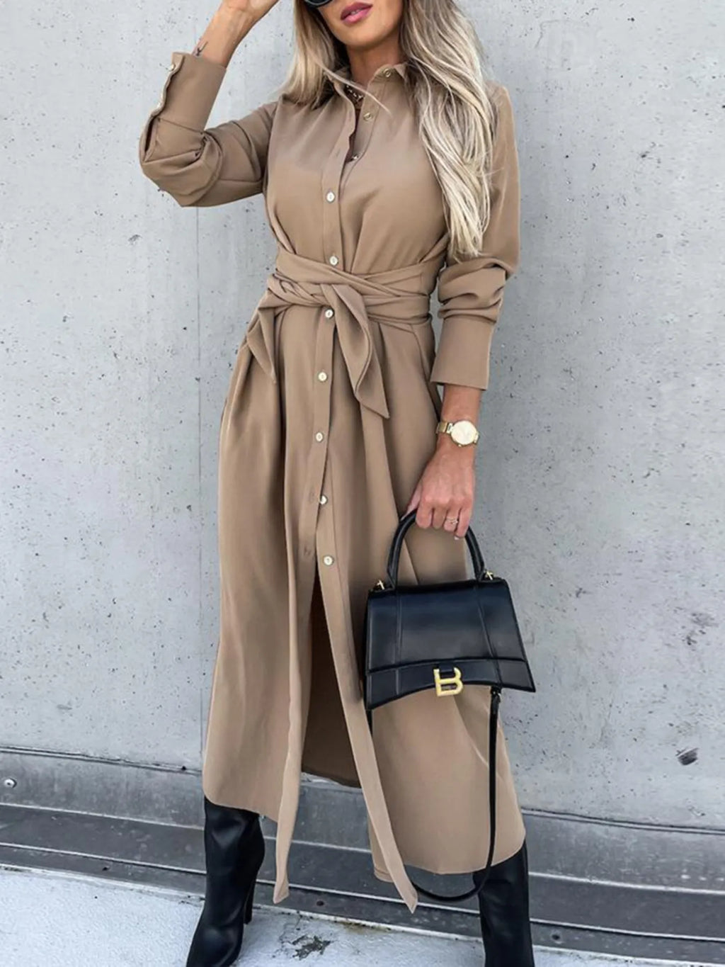Button Front Long Sleeve Shirt Dress